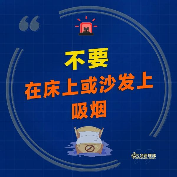 不躺在床上或沙發上吸煙,將打火機等放在兒童觸碰不到的地方,酒精爐等明火源用完即關閉。